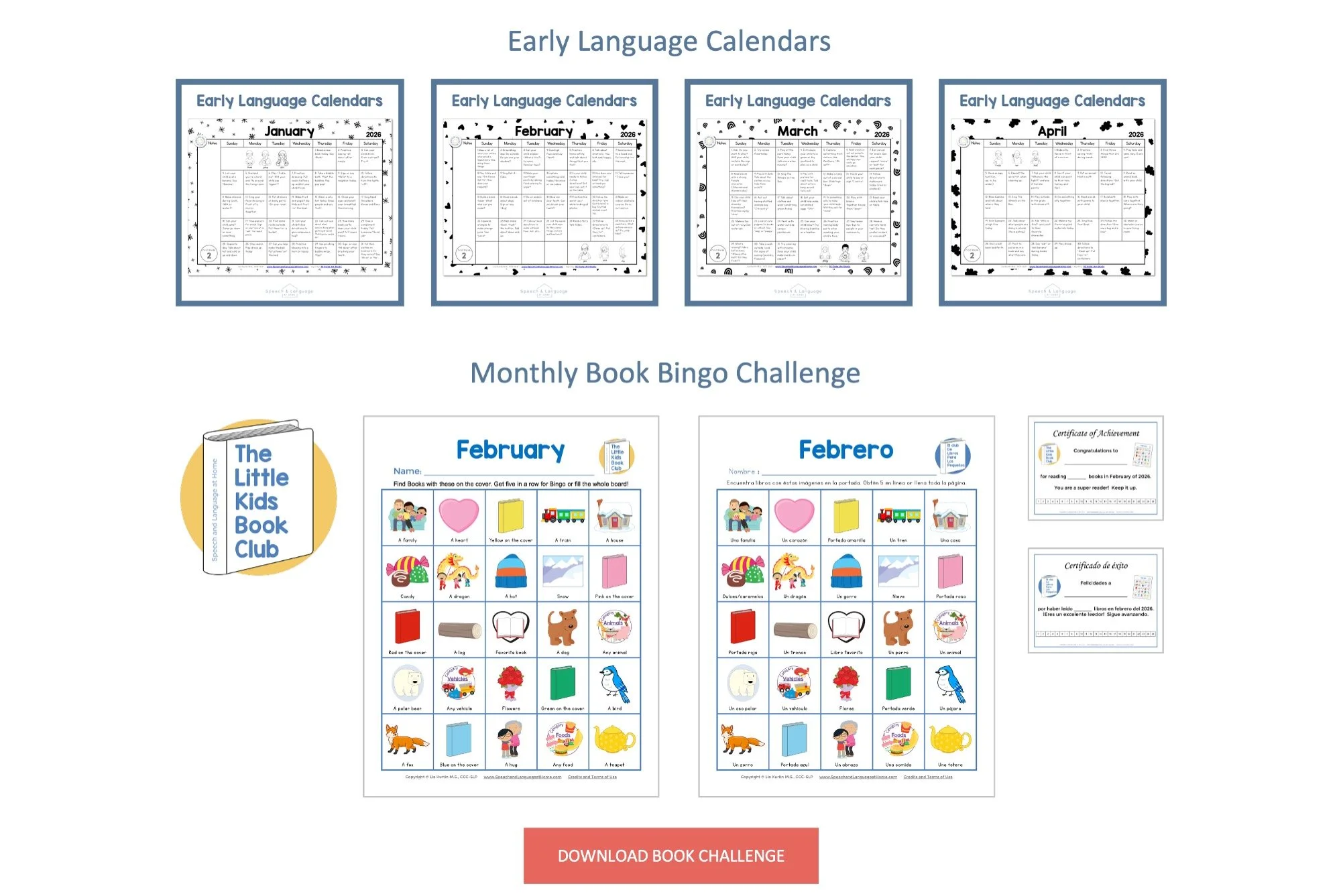 This is available in English and Spanish and also includes Certificates of Achievement. These are grouped in a single downloadable PDF.