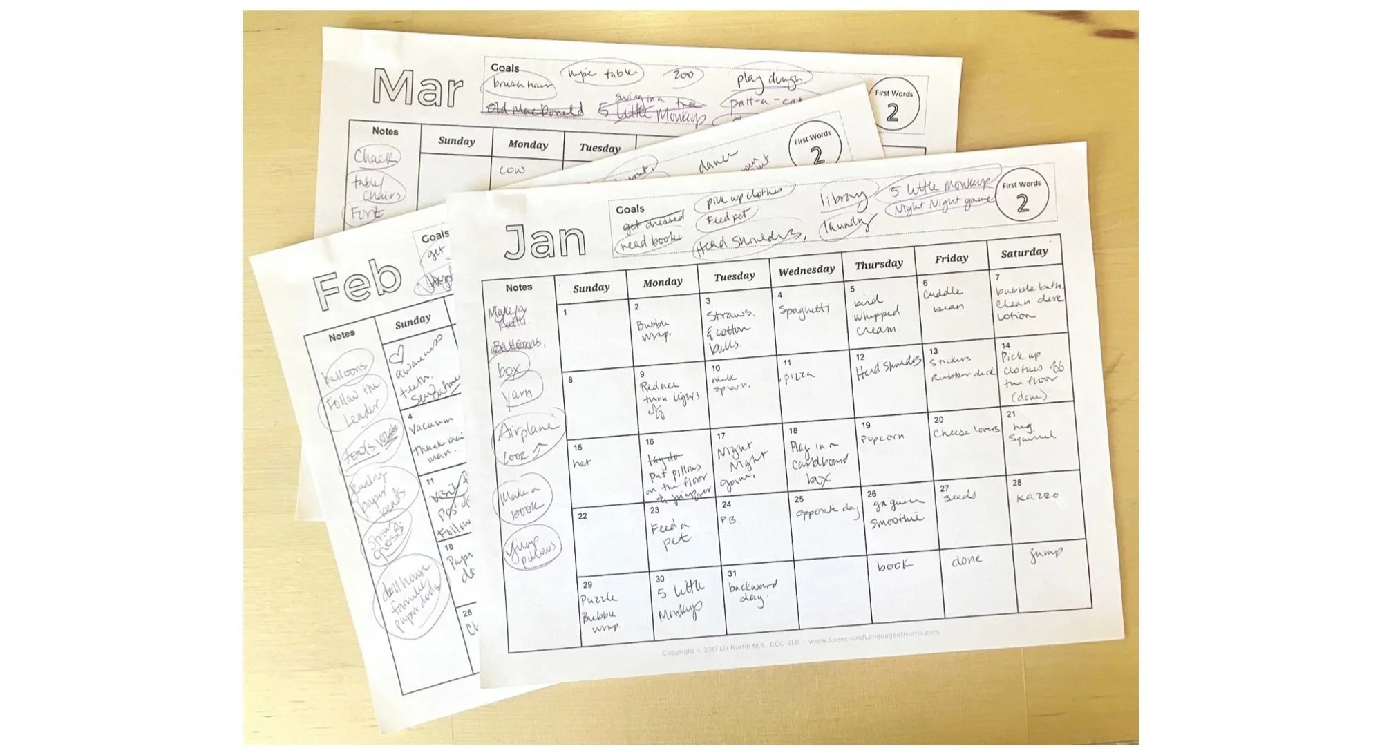 These monthly calendars are a great way to supplement individualized home plans.