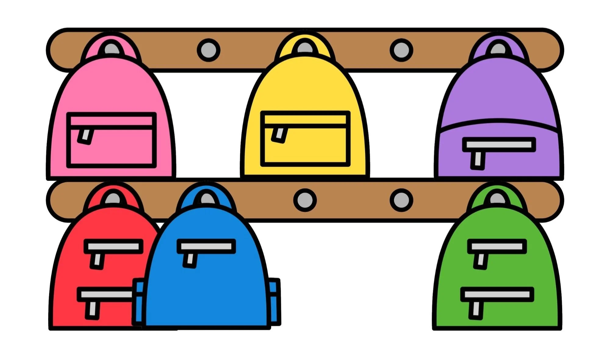 We can practice preposition words using these racks of backpacks.