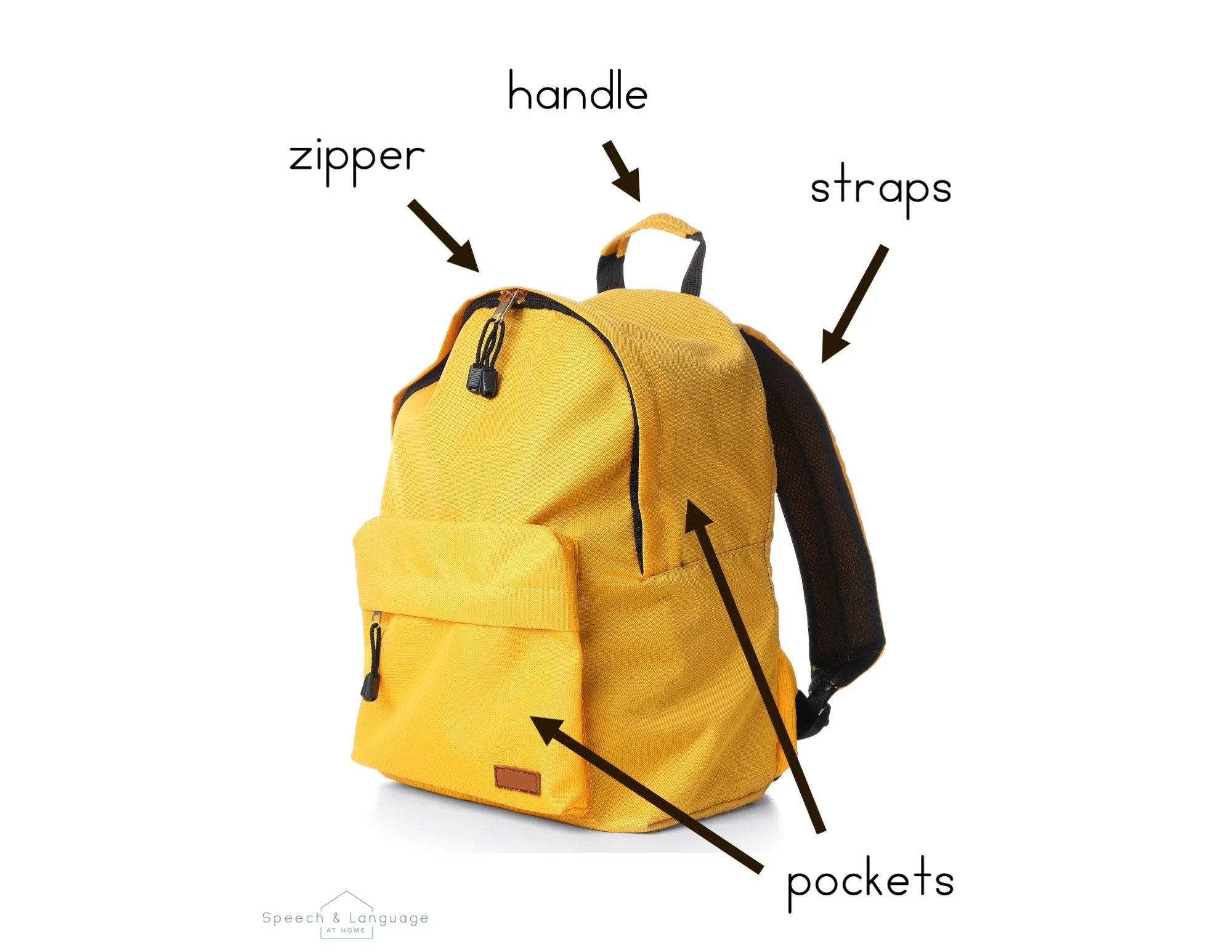 Backpacks are made up of different parts, and naming those parts helps your child build vocabulary and understand how things work.