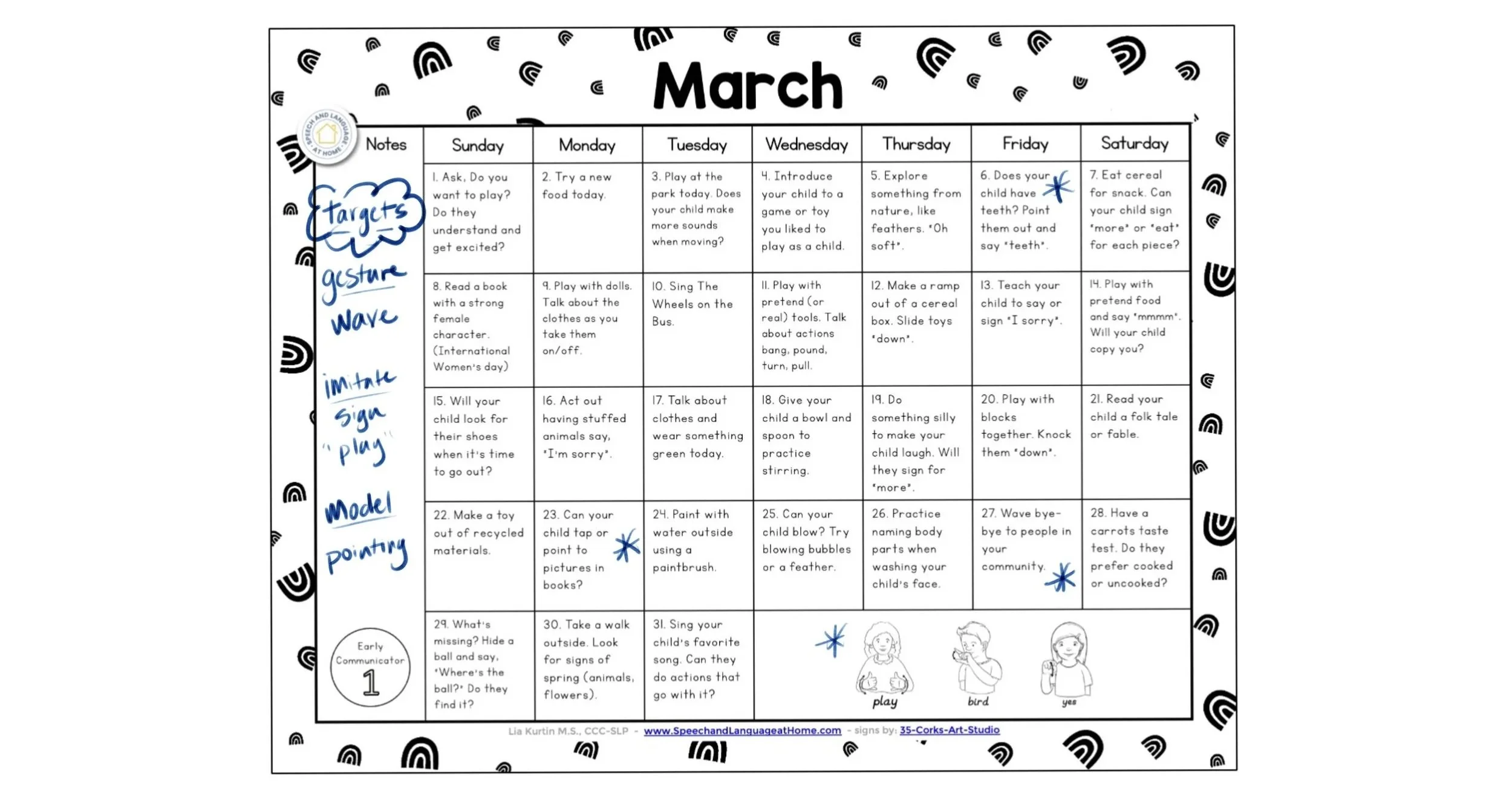 If you work in early intervention or have a child developing early language skills, sign up to download the calendars today.