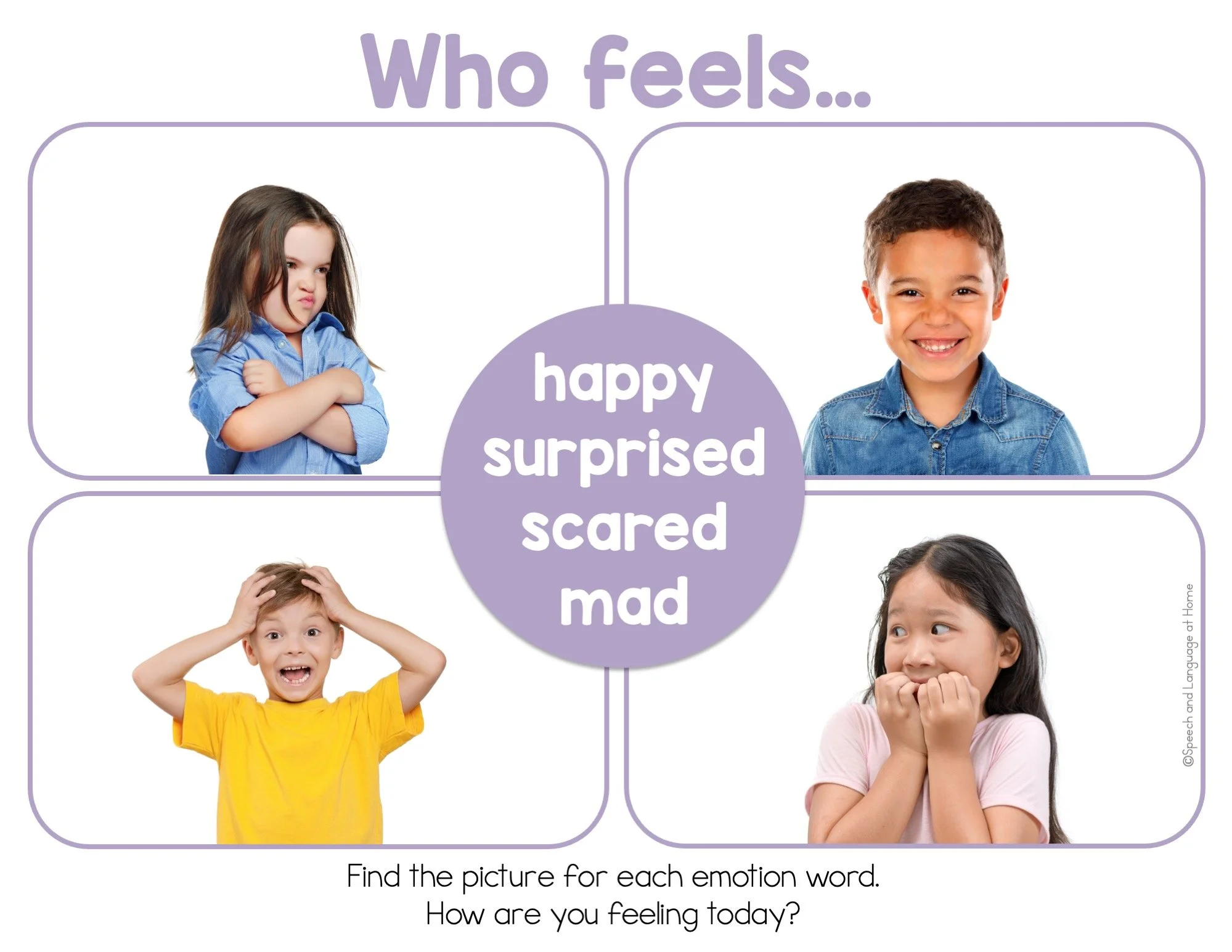 Practice reading body language by pointing out what the we do with our eyes, mouth, shoulders, hands, etc. when we feel happy, surprised, scared, or mad.